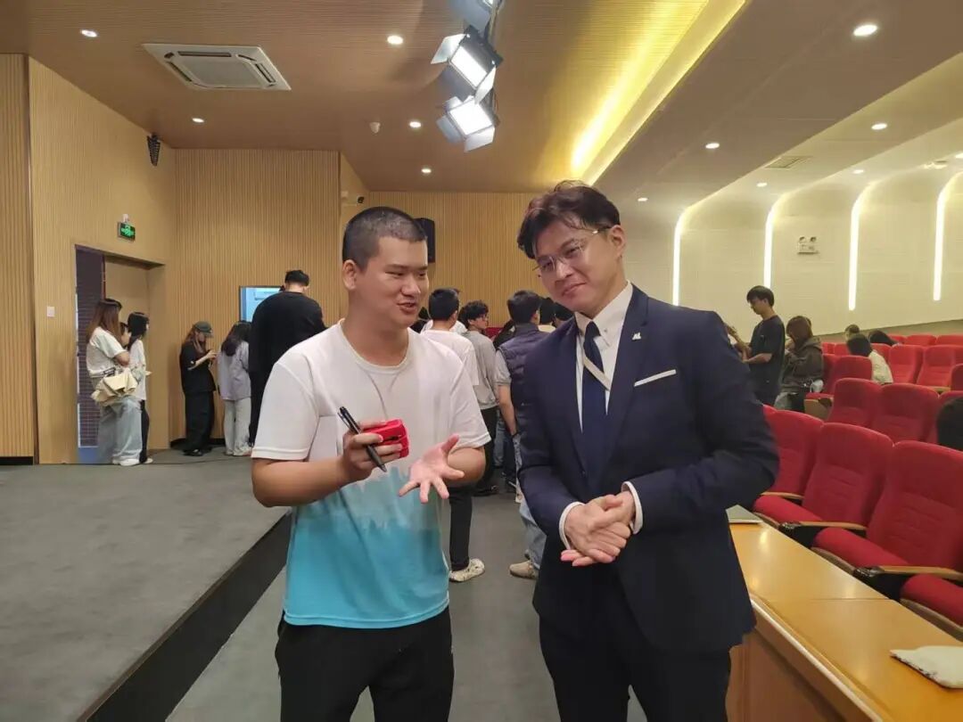 在提问环节,2022级会计学李海亮同学结合其以科大讯飞为研究对象的毕业论文进行提问。李俊纬先生对此作出详细解答。他指出,科大讯飞在人工智能领域的优势首先体现在核心技术层面,尤其在语音识别、自然语言处理等方向。在企业经营方面,科大讯飞采取差异化战略:面向企业提供定制化AI解决方案,助力提质降本;面向消费者则推出普及型智能产品,以培育用户习惯,增强品牌影响力。听完解答,李海亮同学表示收获颇丰。
