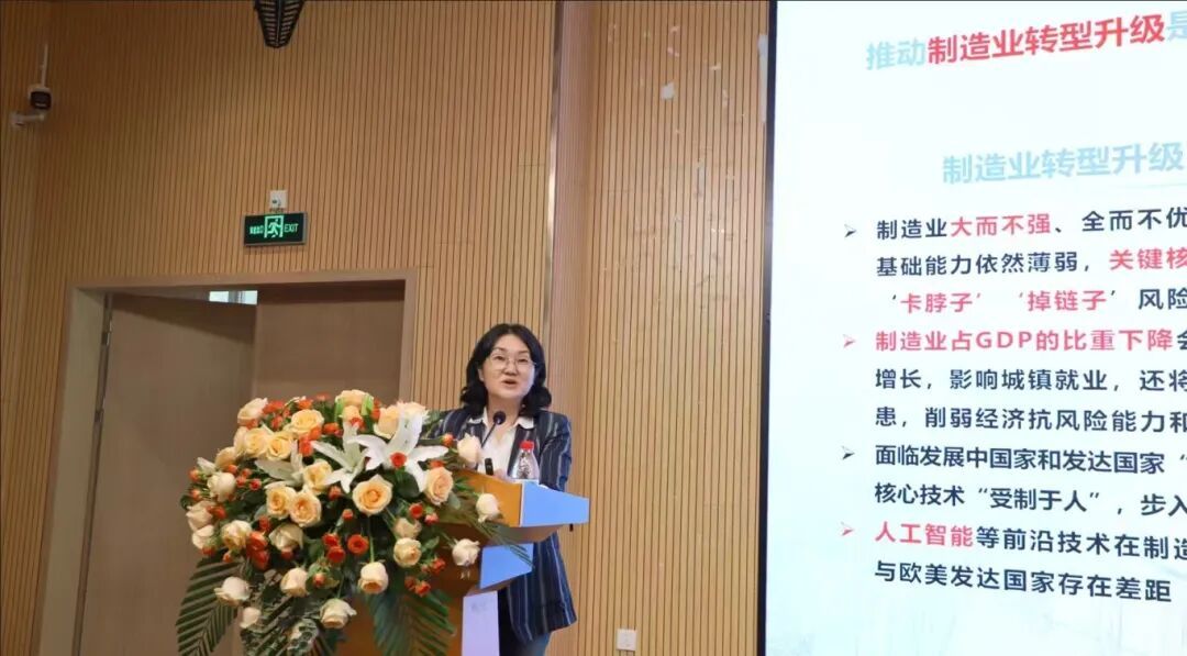 接着,谢卫红教授带来了“人工智能赋能制造业领域研究”的报告。她指出,制造业在全球经济中始终占据主导地位,在人工智能的推动下,更成为构建新质生产力的关键力量。随着人工智能技术的广泛应用,传统工作和技能正逐步被替代,社会对人才的能力提出更高要求,掌握先进技能已成为参与未来分工的重要基础。企业在采纳人工智能技术过程中,受到数字化转型意愿、研发投入、创新能力、产业集中度与组织资源等因素影响。同时,政府支持也发挥着积极的推动作用。她提醒,在人工智能技术大规模落地的过程中,必须高度重视数据安全问题。最后,她鼓励同学们主动学习人工智能相关知识,不断提升自身适应力,以更好地应对未来产业变革带来的挑战。